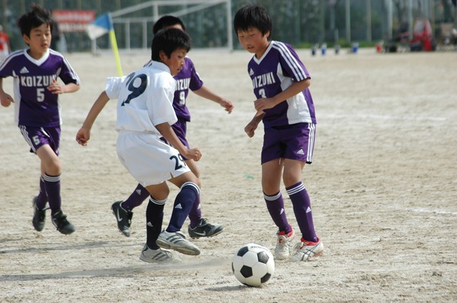 開始早々に得点をあげ、その後、確実に追加を奪い3−1で快勝でした. 人数が少ないカテゴリーですが、元気にボールに向かっていく子供ばかりで、将来が楽しみです. |